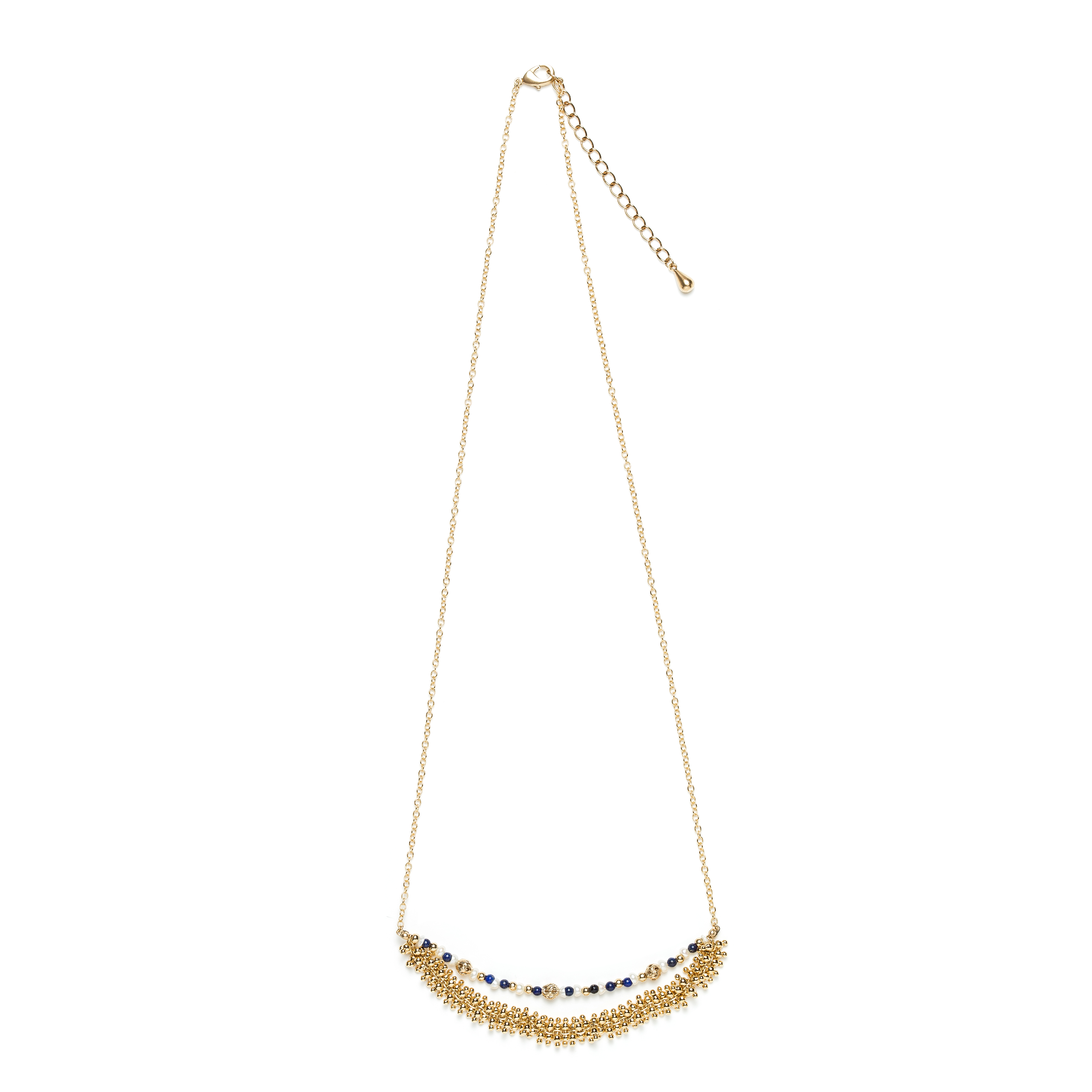 Collier Figuières double or, perles d’eau douce et lapis lazuli