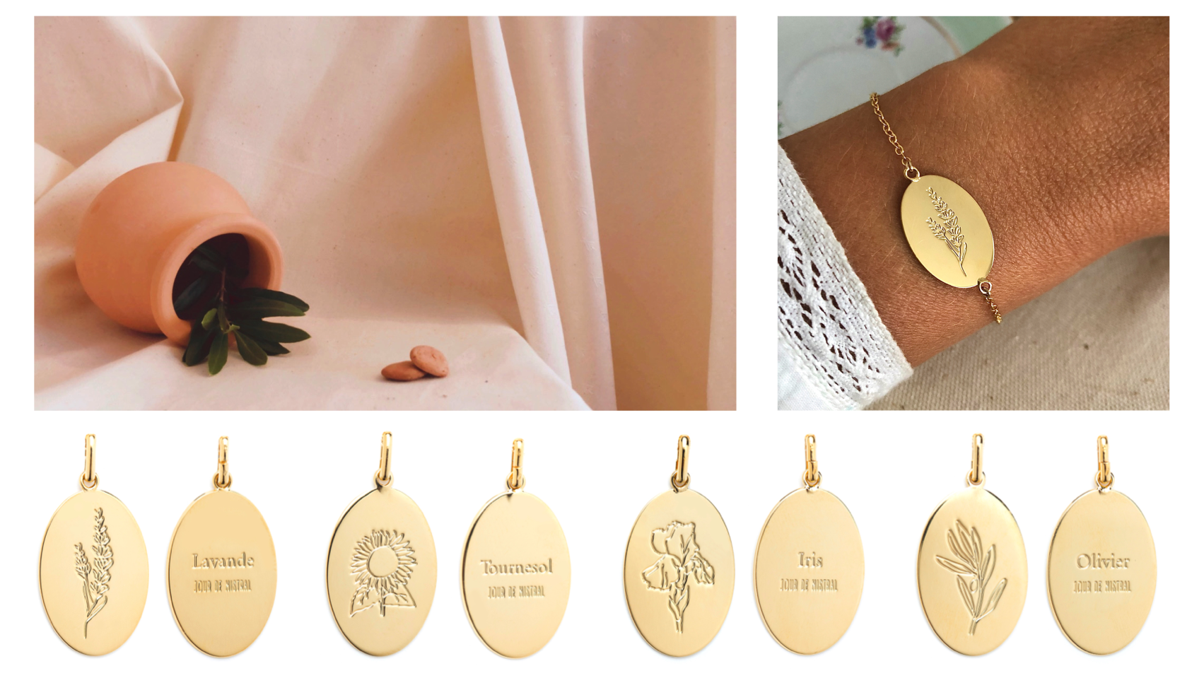Jour de Mistral revisite l’herbier traditionnel pour transformer la fleur en une médaille précieuse, une amulette végétale, riche en souvenirs à porter contre soi pour toujours.