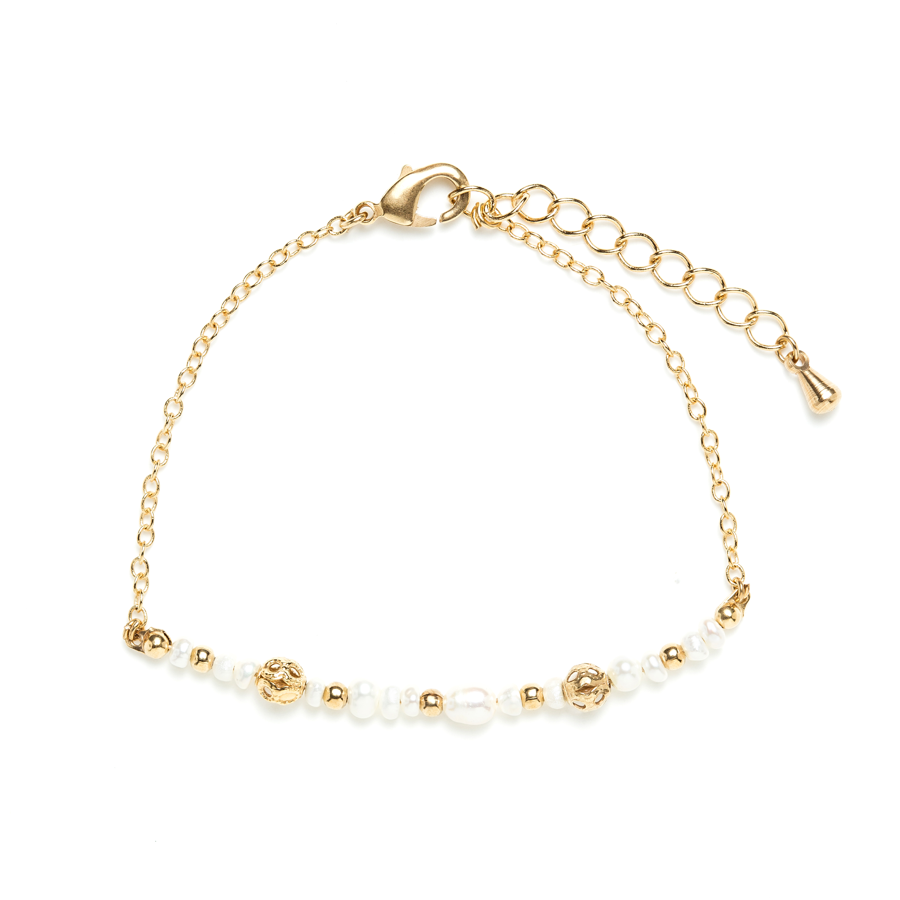 Bracelet doré à l’or fin 24 carats. Perles dorées.