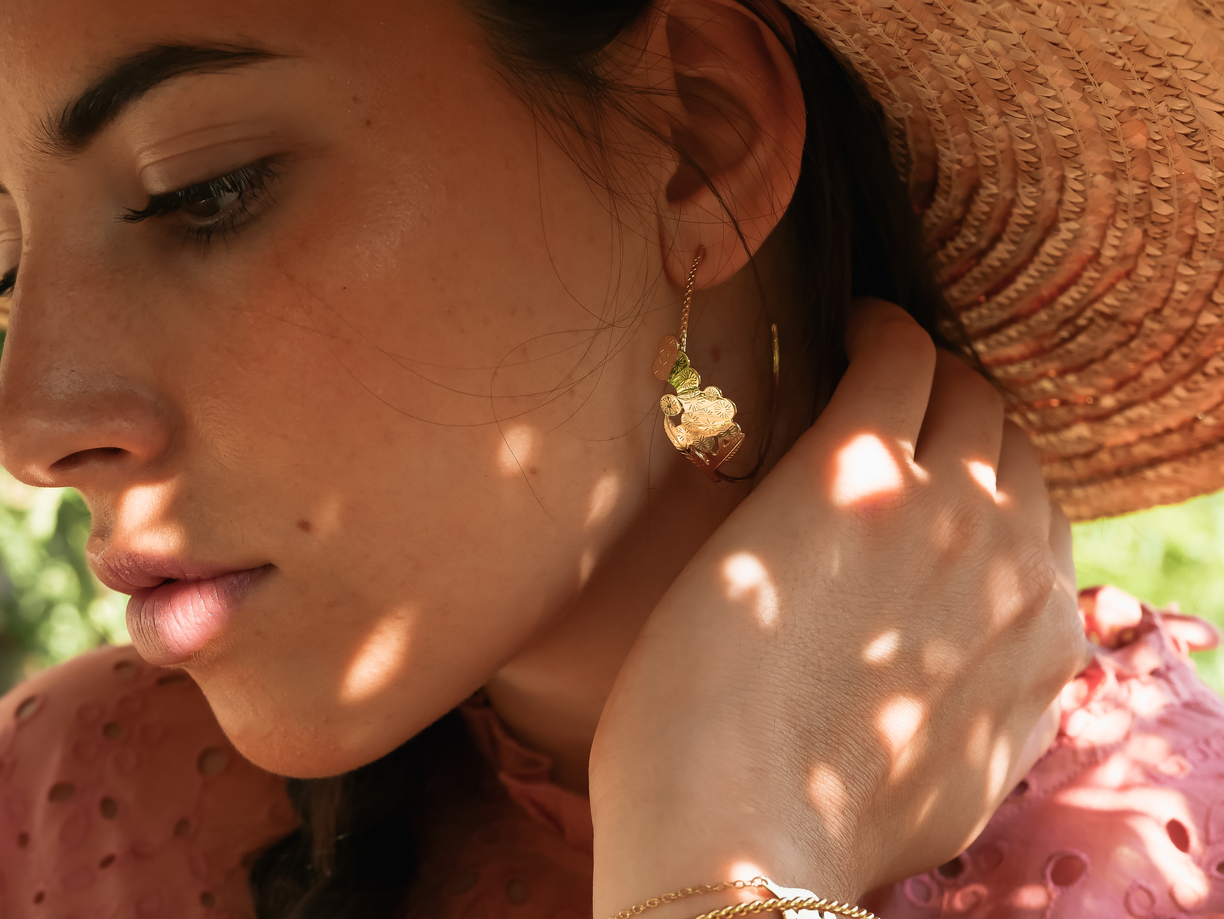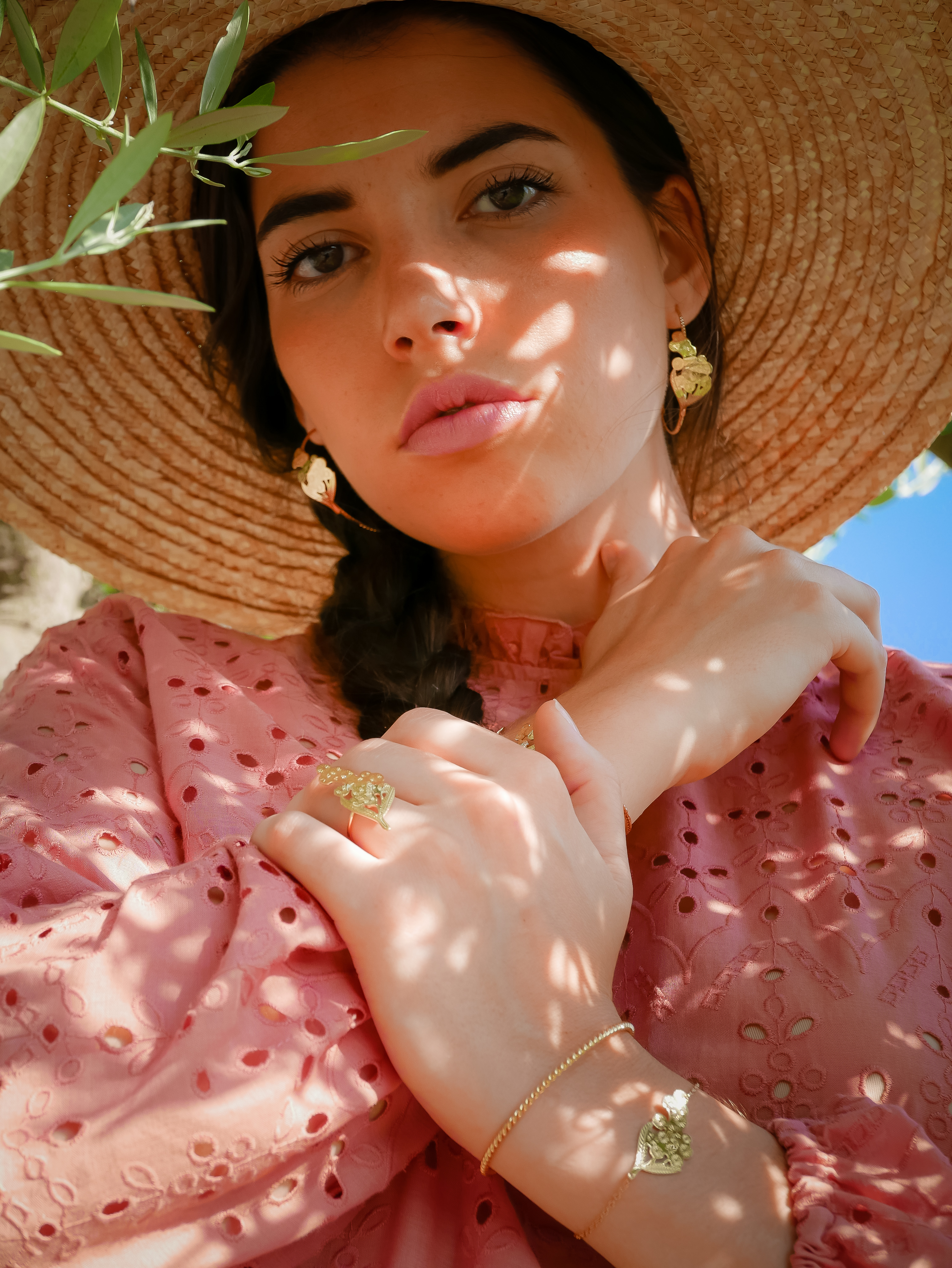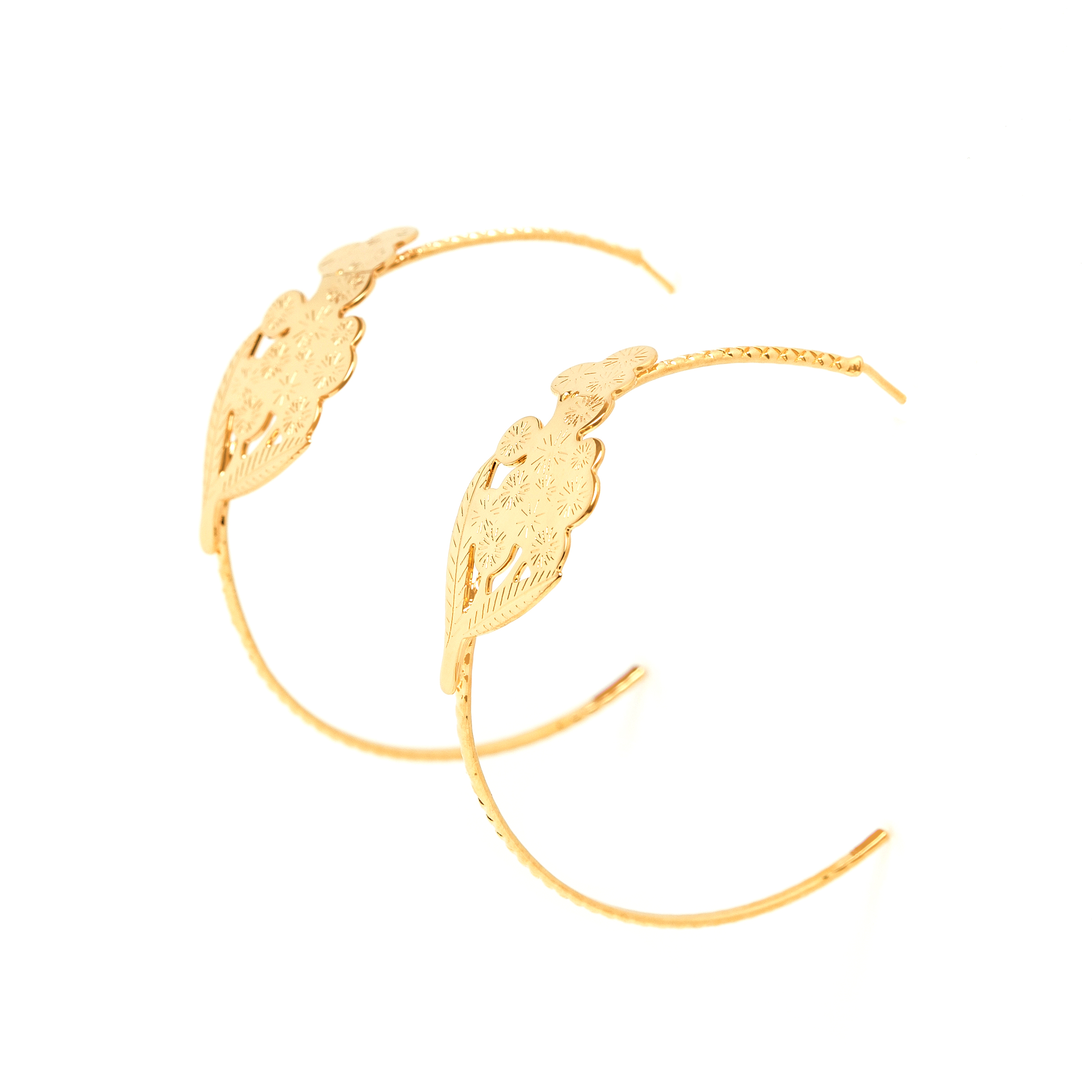Maxi créoles composées d’une médaille brin Mimosa et d’un anneau diamanté.